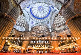 藍色清真寺就在聖索非亞大教堂的附近,據傳是當時的蘇丹,為了超越聖索菲亞所建的。藍色清真寺最標誌的地方在於有6柱宣禮塔,一般的清真寺最多是4柱,有推測說是當時的建築師聽錯了,但現在已不得而知。